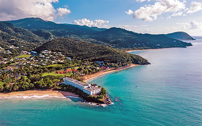 Langley Resort Fort Royal ligger på en av de vakreste strendene i Guadeloupe. Velg mellom hotellrom eller bungalower på stranden.