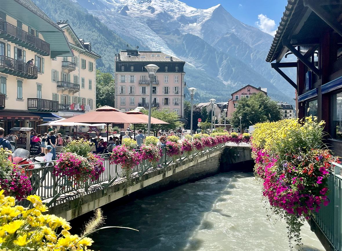 Chamonix er varmt, herlig og livlig om sommeren. Her bor du på Langley Hotel Gustavia som er et velkjent hotell rett over gaten fra togstasjonen .