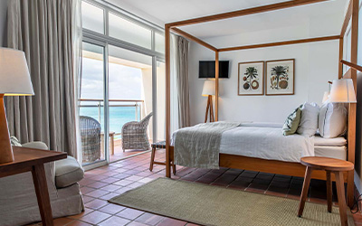Den minste suiten har en nydelig balkong og havutsikt. Hvis du velger en av suitene med fransk balkong, får du havutsikt over østsiden av hotellet.