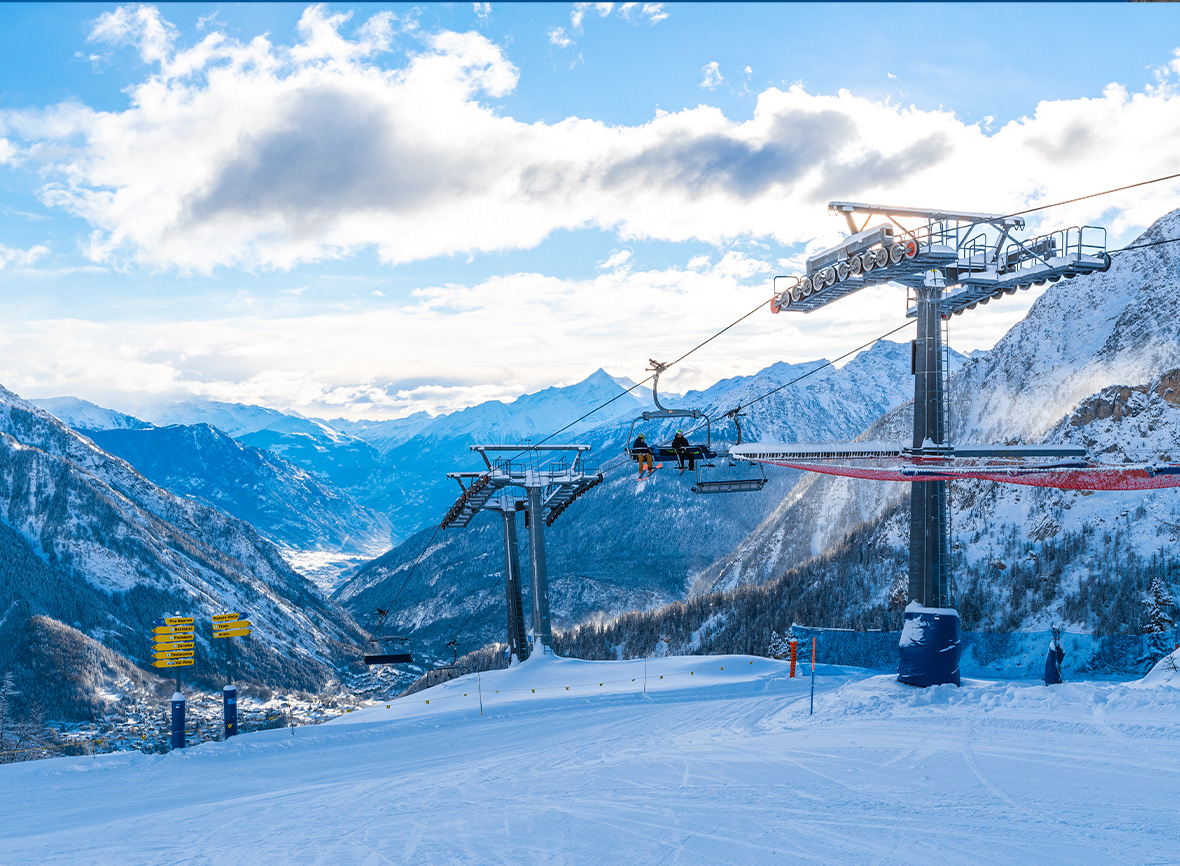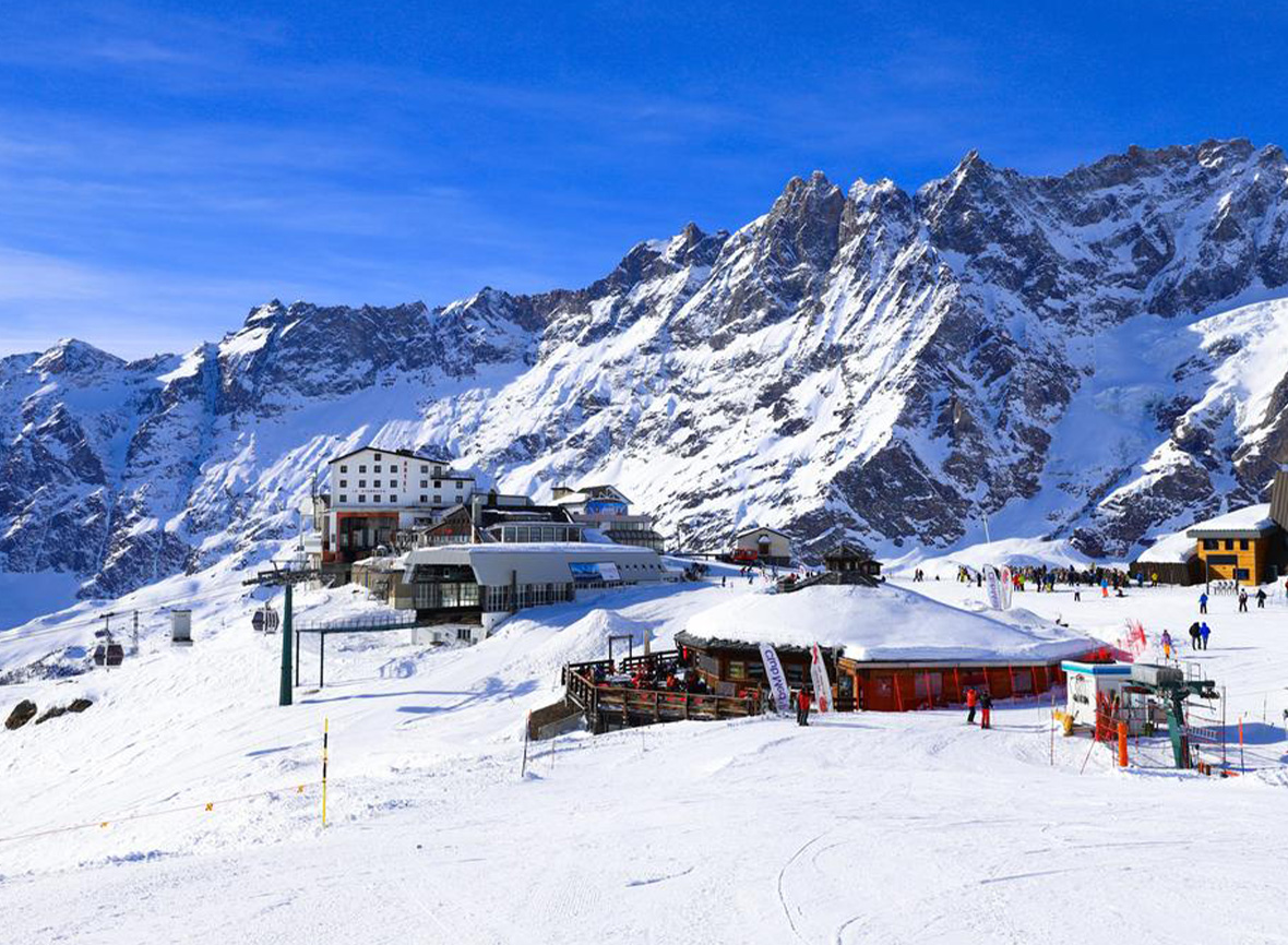 Snö- och solsäkra Cervinia ligger i den vackra Aosta-dalen och delar skidsystem med schweiziska Zermatt. Här har många av backarna ett soligt läge och flera av restaurangerna hör till de bästa i hela området.