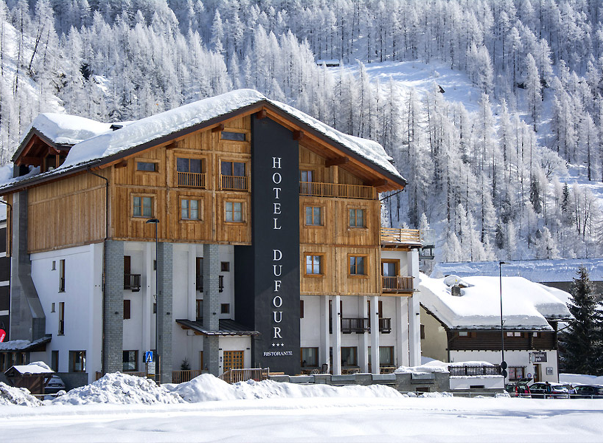 Dufour är ett typiskt alphotell med många faciliteter nära centrum i Gressoney, alldeles intill skidliften Punta Jolanda. Här finns bar, lounge, TV- och spelrum, solterrass och avgiftsfri wellness-avdelning med bastu.